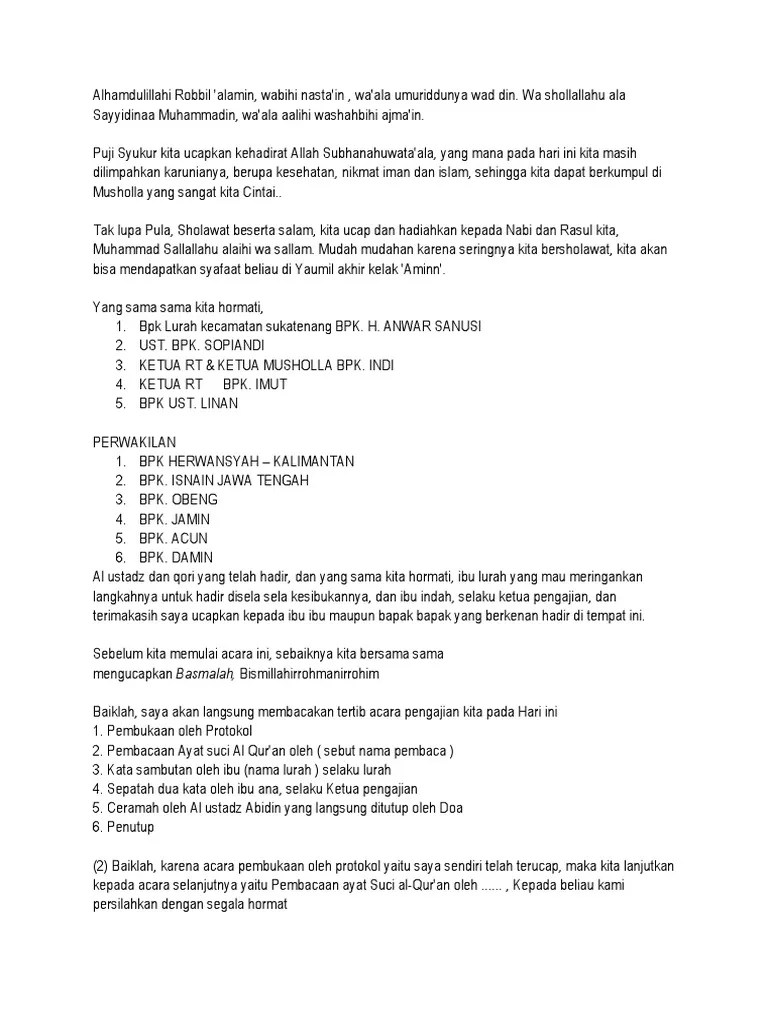 Susunan acara dibuat agar acara yang telah dirancang dapat berjalan dengan teratur sesuai dengan apa yang telah direncanakan. Alhamdulillah pada pagi hari ini kita akan melanjutkan perkuliahan. Mc atau pembawa acara (pa) acara formal biasanya terpaku pada naskah (script) yang sudah disusun. Teks mc dan susunan acara halal bihalal untuk acara kampung, rt, rw atau dusun. *** demikian contoh teks moderator singkat untuk presentasi di kelas. Perkenalkan saya ardiyan fikrianoor perwakilan dari kelompok 3 akan memimpin acara diskusi kita pada pagi hari ini.